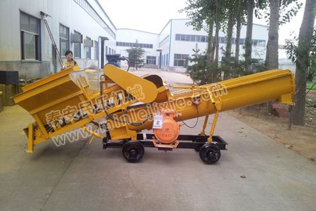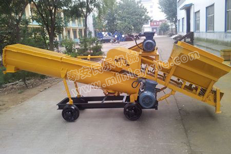 使用時收起攪拌機構(gòu)的支腿,調(diào)整好攪拌機構(gòu)的位置后放下支腿使導(dǎo)軌輪離地,按外形圖圖示將水泥輸送帶、細石輸送帶搭扣在攪拌機構(gòu)上即可。